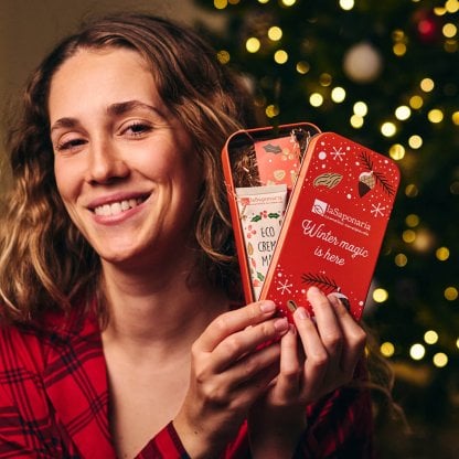 Regala morbidezza questo Natale! Questo scrigno in latta racchiude la combo vincente per mani perfette: una crema mani alle mandorle e frutti rossi che nutre intensamente, e una bellissima limetta unghie 2 in 1 "Festa" con anima in legno. Perfetto per combattere il freddo invernale e dire addio alle screpolature, è il dono ideale per mamme, amiche, colleghe e tutti coloro che desiderano mani curate e vellutate. Un pensiero che farà sorridere chiunque ami prendersi cura di sé con un tocco di gioia!