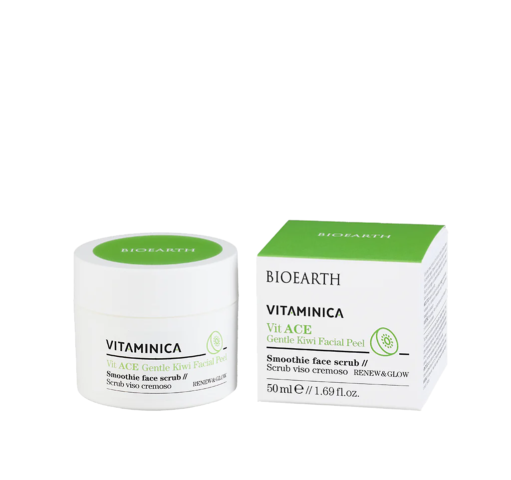 Lo scrub viso al Kiwi ha una formula cremosa arricchita con Burro di Karitè bio e un complesso vitaminico (Vitamina C stabilizzata, Vitamine A ed E) che protegge e rigenera la pelle. Gli estratti vegetali biologici di Pompelmo, Arancio, Kiwi, Mandorle e Aloe insieme a esfolianti naturali e biodegradabili, come semi di Kiwi e polvere di Riso, garantiscono un’esfoliazione delicata ma efficace. La texture cremosa assicura una detersione profonda senza aggredire, lasciando la pelle morbida, luminosa e nutrita.
